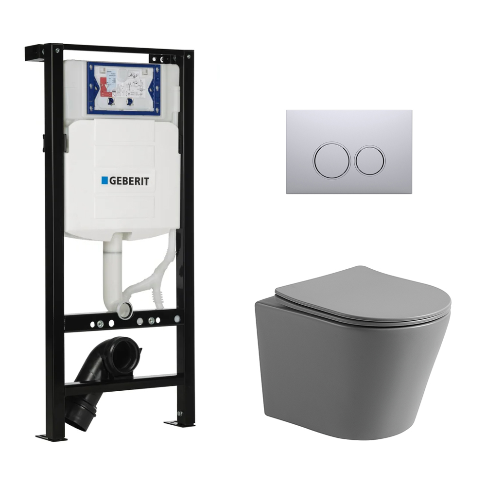 Toiletset Julio randloos mat grijs met bedieningspaneel Ring RVS en Plieger Duofix WC-element (UP320)