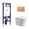 Toiletset Julio randloos mat wit met bedieningspaneel Flat copper geborsteld RVS en Geberit Duofix WC-element (UP320)
