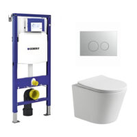 Toiletset Julio randloos mat wit met bedieningspaneel Flat geborsteld RVS en Geberit Duofix WC-element (UP320)