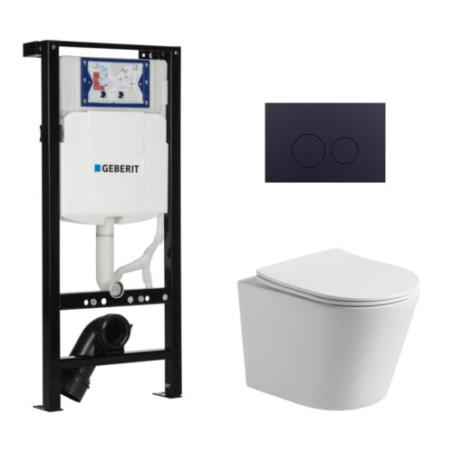 Toiletset Julio randloos mat wit met bedieningspaneel Flat mat zwart RVS en Plieger Duofix WC-element (UP320)