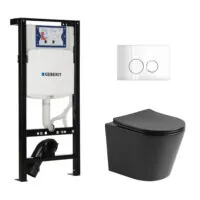 Toiletset Julio randloos mat zwart met bedieningspaneel Flat chroom en Plieger Duofix WC-element (UP320)