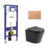 Toiletset Julio randloos mat zwart met bedieningspaneel Flat copper geborsteld RVS en Geberit Duofix WC-element (UP320)