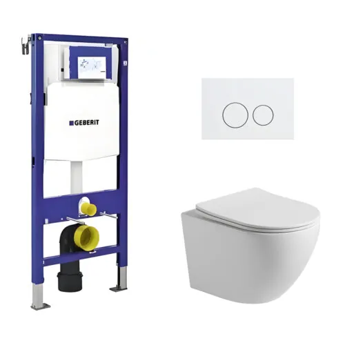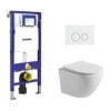 Toiletset Pietro randloos glans wit met bedieningspaneel Flat mat wit RVS en Geberit Duofix WC-element (UP320)