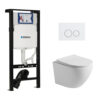 Toiletset Pietro randloos glans wit met bedieningspaneel Flat mat wit RVS en Plieger Duofix WC-element (UP320)