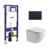 Toiletset Pietro randloos glans wit met bedieningspaneel flat mat zwart RVS en Geberit Duofix WC-element (UP320)