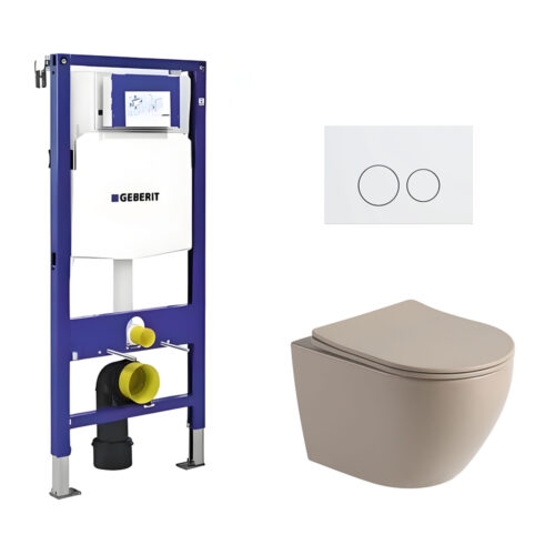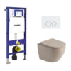Toiletset Pietro randloos mat beige met bedieningspaneel Flat mat wit RVS en Geberit Duofix WC-element (UP320)
