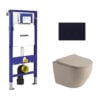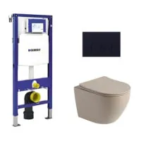Toiletset Pietro randloos mat beige met bedieningspaneel Flat mat zwart en Geberit Duofix WC-element (UP320)