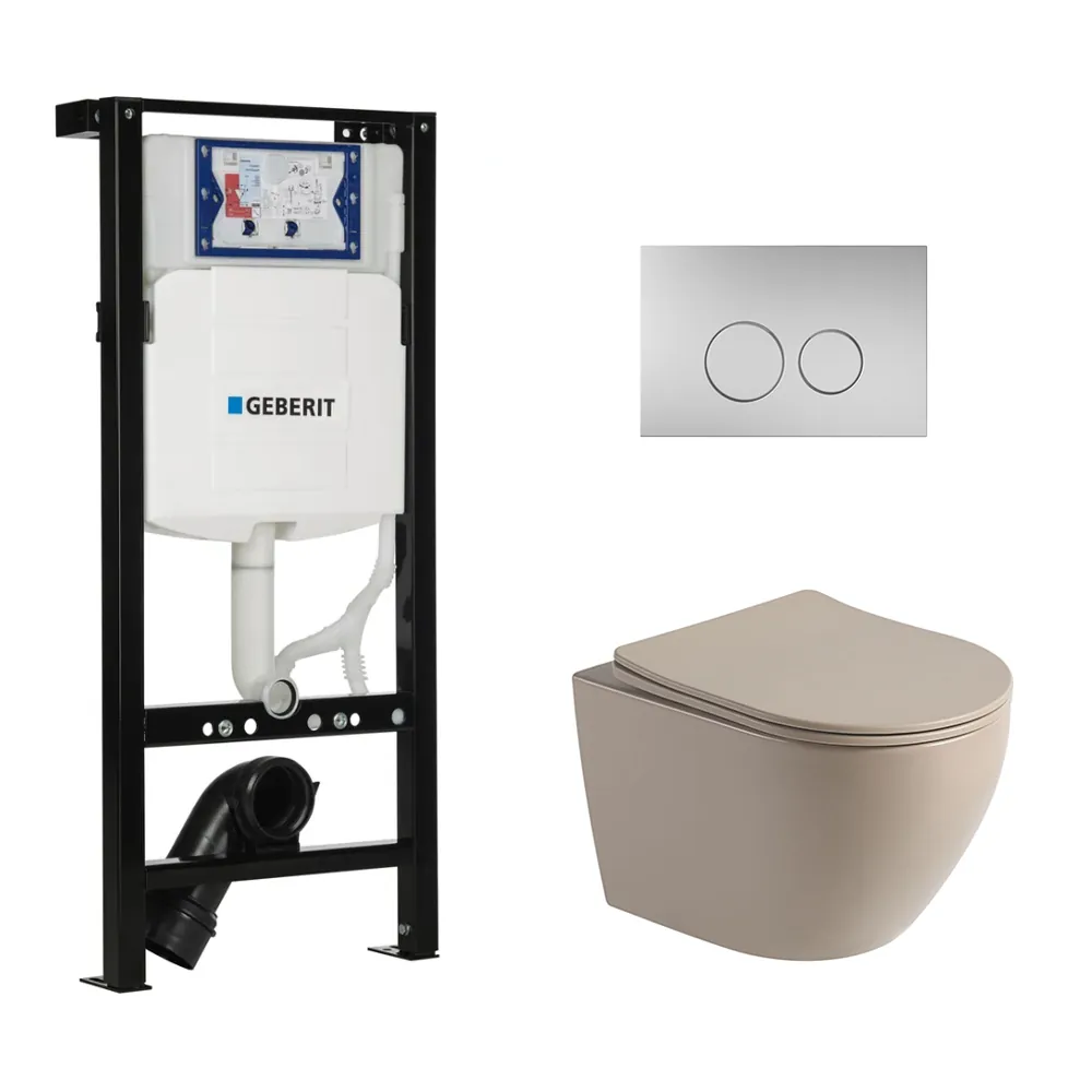Toiletset Pietro randloos mat beige met bedieningspaneel Flat RVS en Plieger Duofix WC-element (UP320)