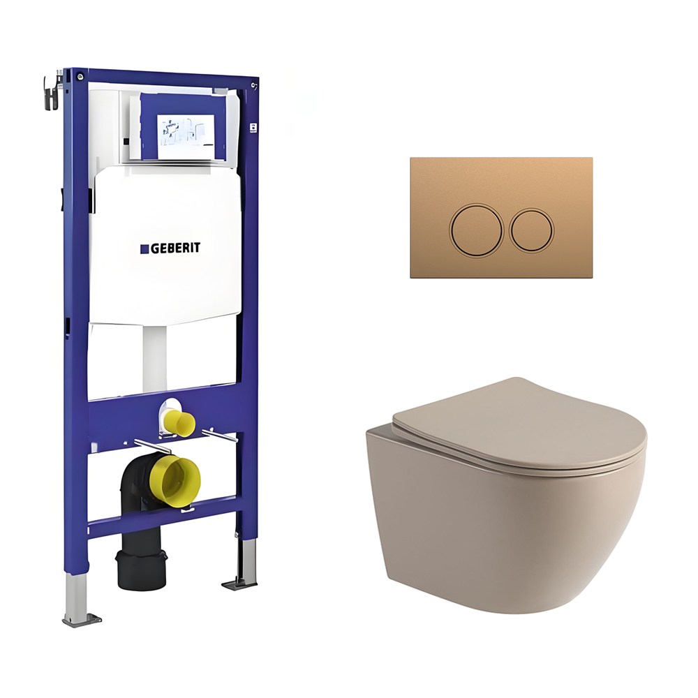Toiletset Pietro randloos mat beige met bedieningspaneel Ring copper en Geberit Duofix WC-element (UP320)