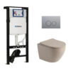 Toiletset Pietro randloos mat beige met bedieningspaneel Ring gun metal en Plieger Duofix WC-element (UP320)