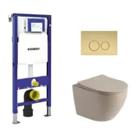 Toiletset Pietro randloos mat beige met bedieningspaneel Ring mat goud en Geberit Duofix WC-element (UP320)