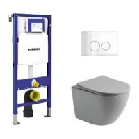 Toiletset Pietro randloos mat grijs met bedieningspaneel Flat chroom en Geberit Duofix WC-element (UP320)