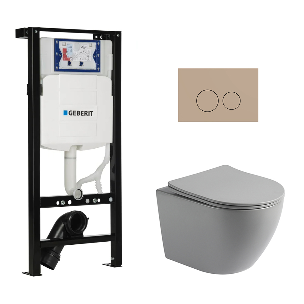 Toiletset Pietro randloos mat grijs met bedieningspaneel Flat mat beige en Plieger Duofix WC-element (UP320)