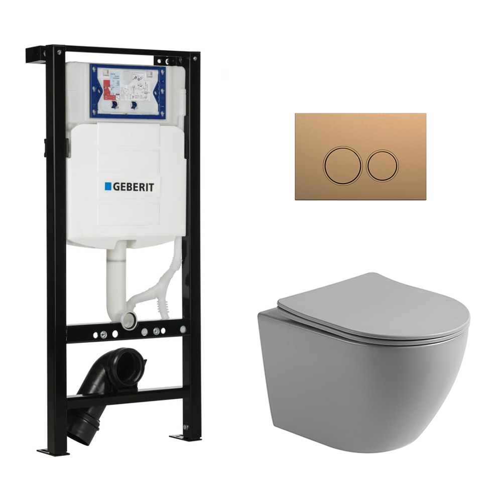 Toiletset Pietro randloos mat grijs met bedieningspaneel Ring copper en Plieger Duofix WC-element (UP320)
