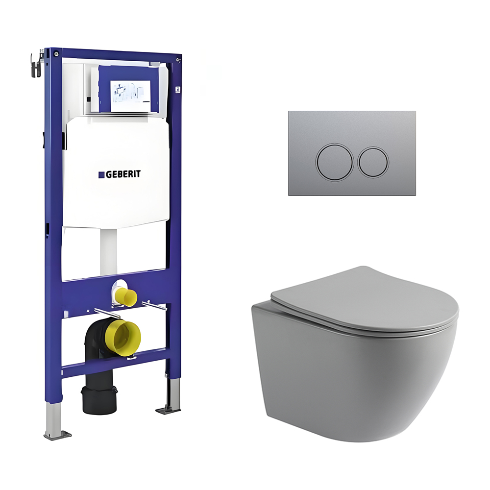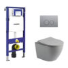 Toiletset Pietro randloos mat grijs met bedieningspaneel Ring gun metal en Geberit Duofix WC-element (UP320)