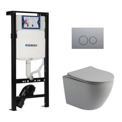 Toiletset Pietro randloos mat grijs met bedieningspaneel Ring gun metal en Plieger Duofix WC-element (UP320)