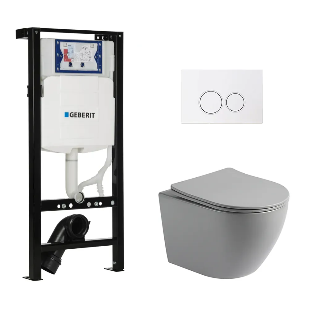 Toiletset Pietro randloos mat grijs met bedieningspaneel Ring mat wit en Plieger Duofix WC-element (UP320)