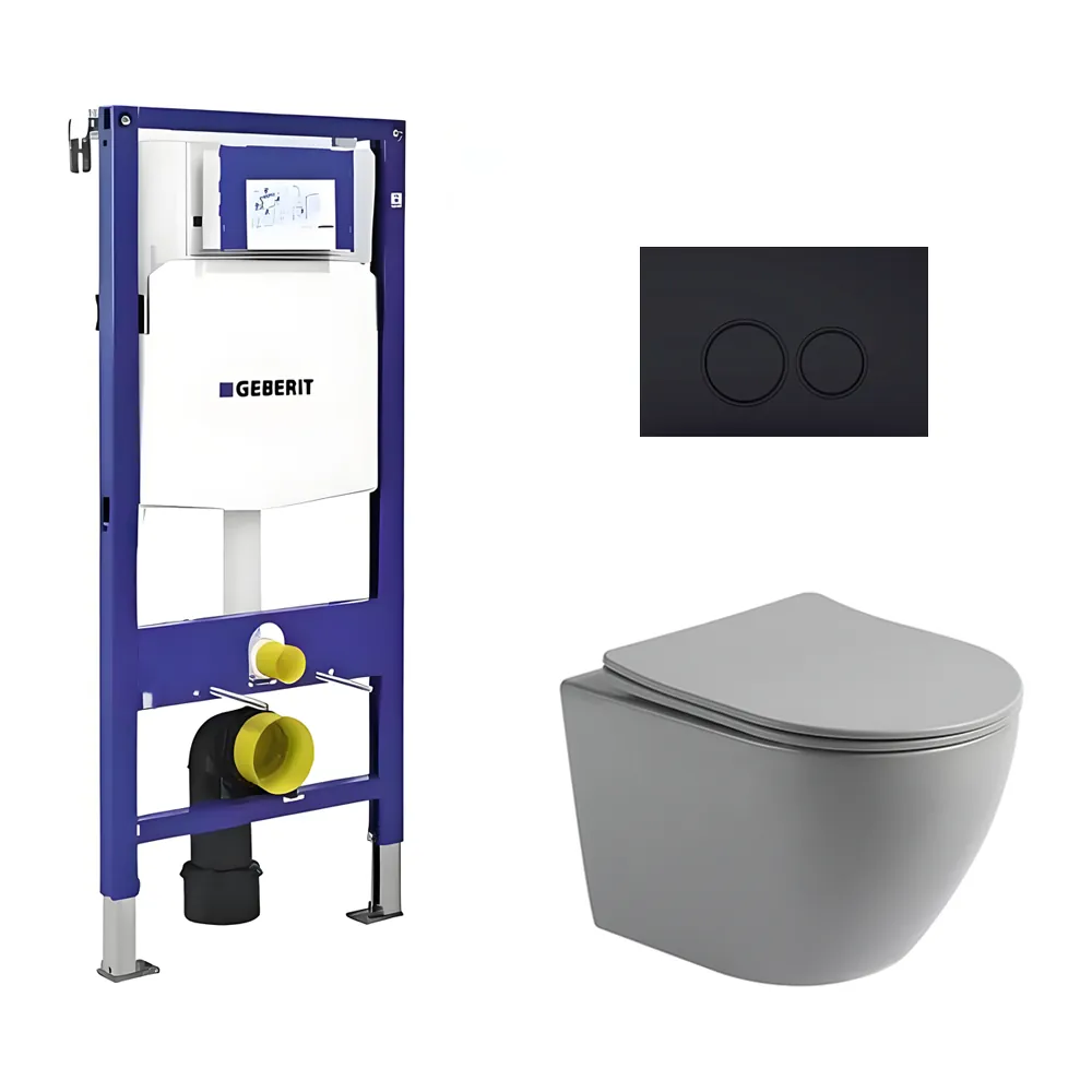 Toiletset Pietro randloos mat grijs met bedieningspaneel Ring mat zwart en Geberit Duofix WC-element (UP320)