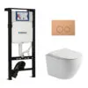 Toiletset Pietro randloos mat wit met bedieningspaneel Flat copper geborsteld RVS en Plieger Duofix WC-element (UP320)