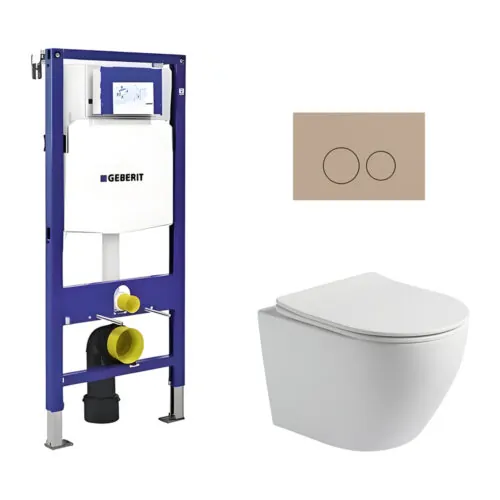 Toiletset Pietro randloos mat wit met bedieningspaneel Flat mat beige en Geberit Duofix WC-element (UP320)
