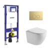 Toiletset Pietro randloos mat wit met bedieningspaneel Flat mat goud en Geberit Duofix WC-element (UP320)