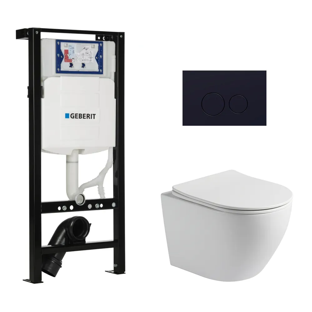 Toiletset Pietro randloos mat wit met bedieningspaneel Flat mat zwart en Plieger Duofix WC-element (UP320)