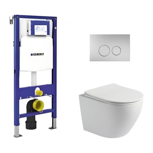 Toiletset Pietro randloos mat wit met bedieningspaneel Flat RVS en Geberit Duofix WC-element (UP320)