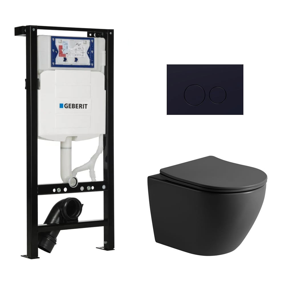 Toiletset Pietro randloos mat zwart met bedieningspaneel Flat mat zwart en Plieger Duofix WC-element (UP320)