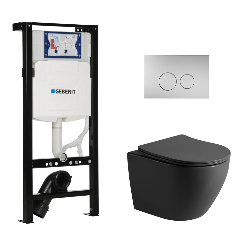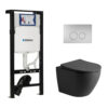 Toiletset Pietro randloos mat zwart met bedieningspaneel Flat RVS en Plieger Duofix WC-element (UP320)