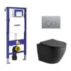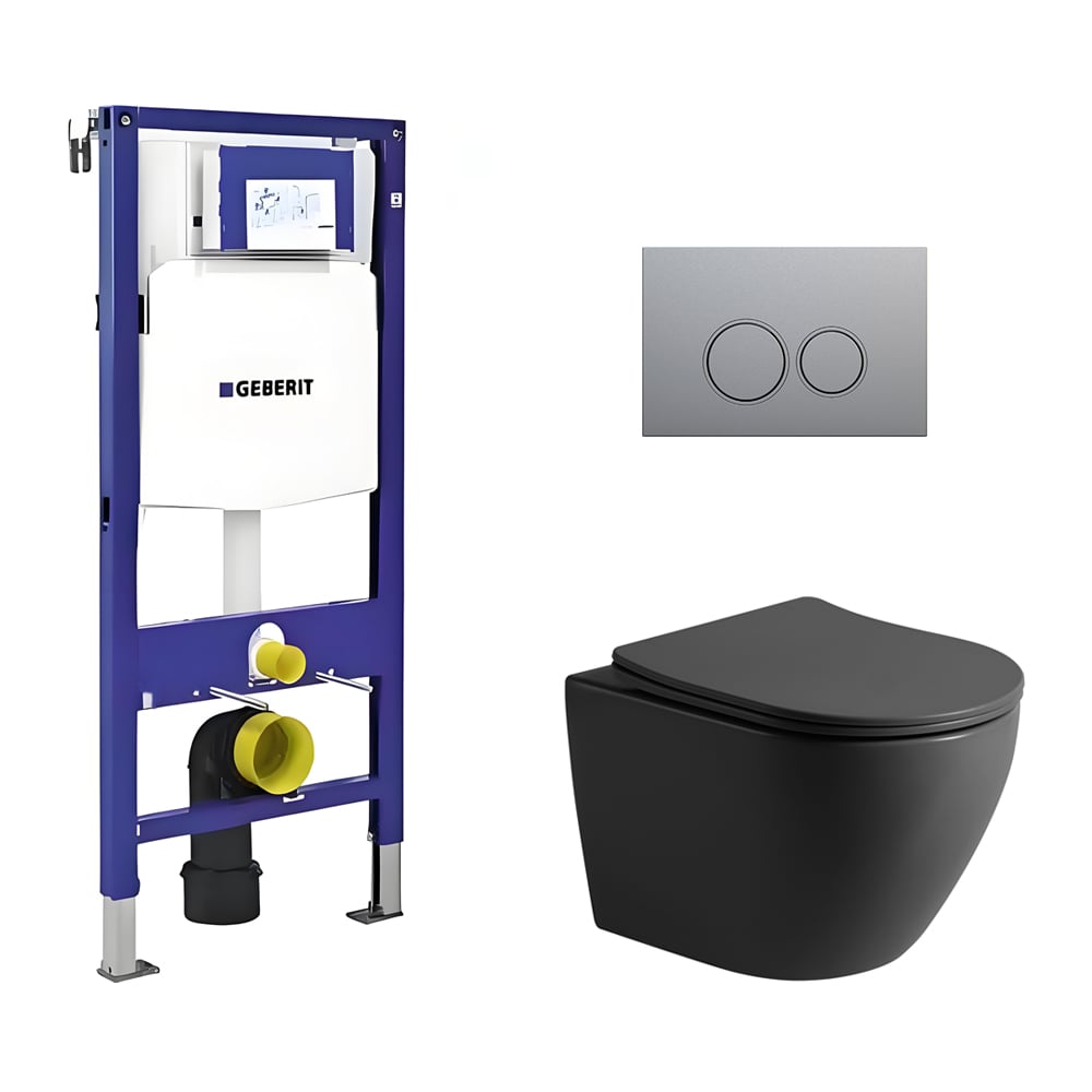 Toiletset Pietro randloos mat zwart met bedieningspaneel Ring gun metal en Geberit Duofix WC-element (UP320)