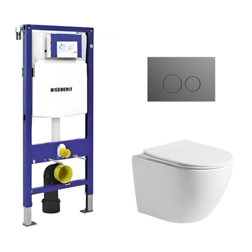 Toiletset Pietro tornado flush glans wit met bedieningspaneel Flat gun metal geborsteld RVS en Geberit Duofix WC-element (UP320)