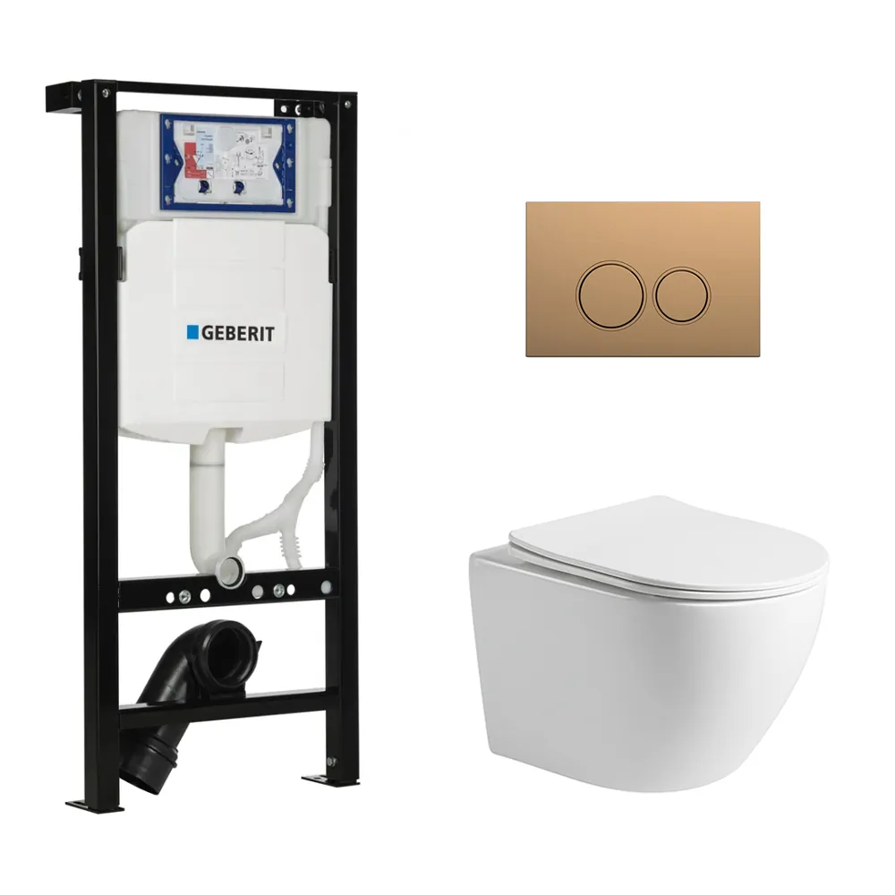 Toiletset Pietro tornado flush glans wit met bedieningspaneel Ring copper en Plieger Duofix WC-element (UP320)