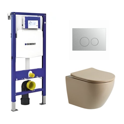 Toiletset Pietro tornado flush mat beige met bedieningspaneel Flat geborsteld RVS en Geberit Duofix WC-element (UP320)