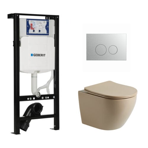 - Hangend toilet Pietro tornado flush mat beige, inclusief softclose zitting