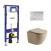Toiletset Pietro tornado flush mat beige met bedieningspaneel Flat RVS en Geberit Duofix WC-element (UP320)