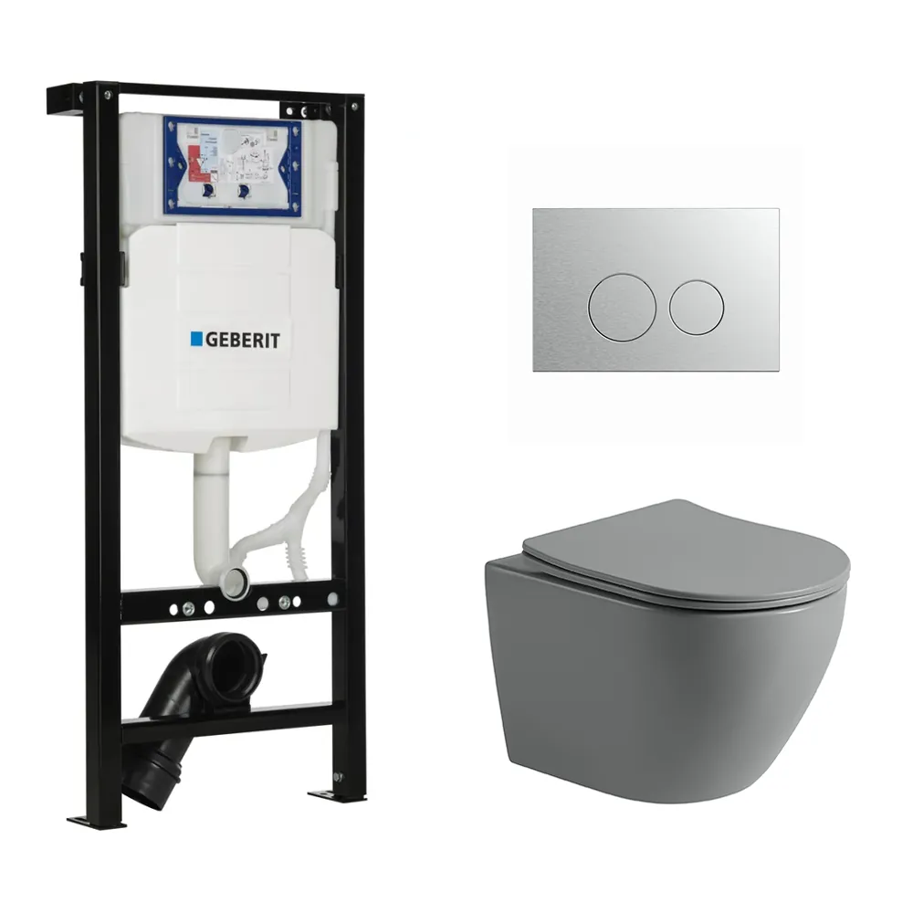 Toiletset Pietro tornado flush mat grijs met bedieningspaneel Flat geborsteld RVS en Plieger Duofix WC-element (UP320)