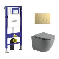 Toiletset Pietro tornado flush mat grijs met bedieningspaneel Flat mat goud en Geberit Duofix WC-element (UP320)