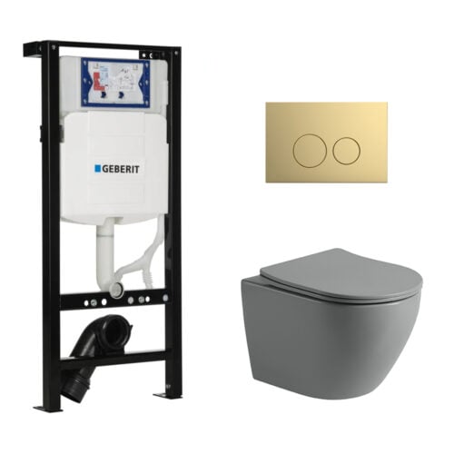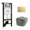 Toiletset Pietro tornado flush mat grijs met bedieningspaneel Flat mat goud en Plieger Duofix WC-element (UP320)