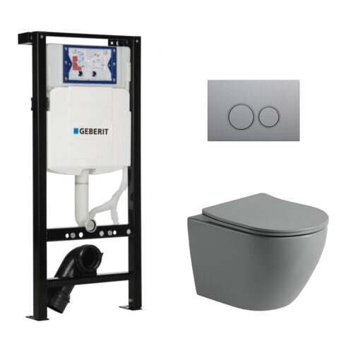 Toiletset Pietro tornado flush mat grijs met bedieningspaneel Ring gun metal en Plieger Duofix WC-element (UP320)
