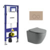 Toiletset Pietro tornado flush mat grijs met bedieningspaneel Ring mat beige en Geberit Duofix WC-element (UP320)