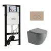 Toiletset Pietro tornado flush mat grijs met bedieningspaneel Ring mat beige en Plieger Duofix WC-element (UP320)