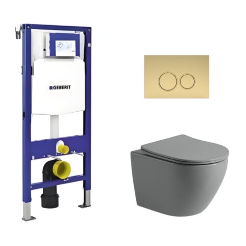 Toiletset Pietro tornado flush mat grijs met bedieningspaneel Ring mat goud en Geberit Duofix WC-element (UP320)