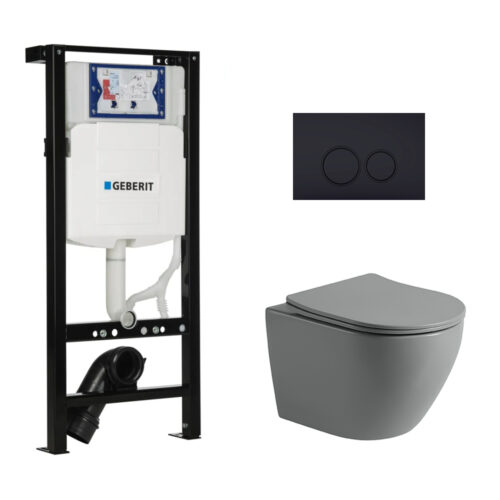 Toiletset Pietro tornado flush mat grijs met bedieningspaneel Ring mat zwart en Plieger Duofix WC-element (UP320)