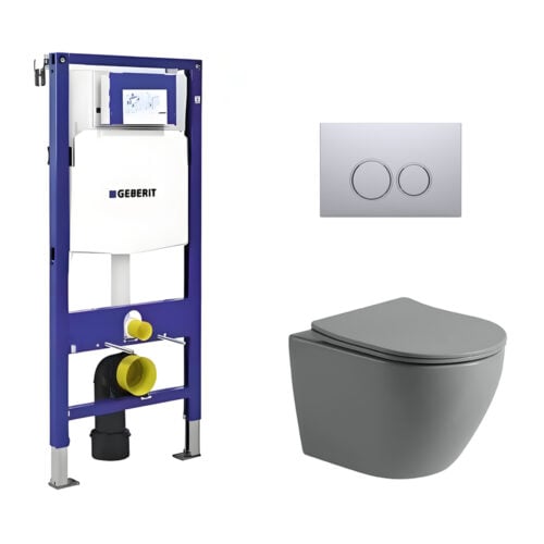 Toiletset Pietro tornado flush mat grijs met bedieningspaneel Ring RVS en Geberit Duofix WC-element (UP320)
