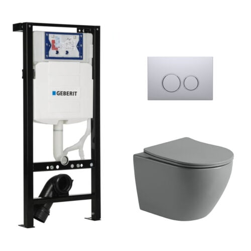 Toiletset Pietro tornado flush mat grijs met bedieningspaneel Ring RVS en Plieger Duofix WC-element (UP320)