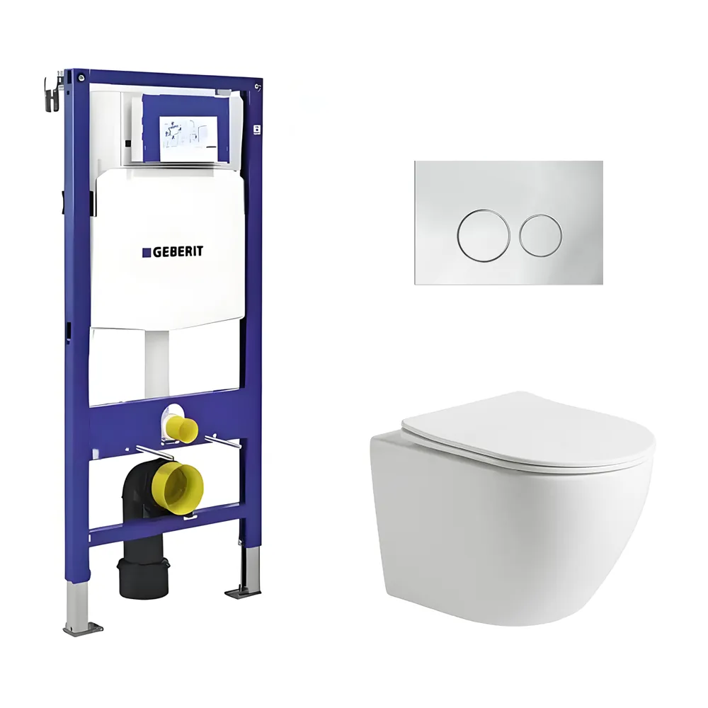 Dankzij de perfecte combinatie van hoogwaardig keramiek, RVS en betrouwbare Geberit techniek, kies je voor een set die stijl, hygiëne en kwaliteit moeiteloos samenbrengt.