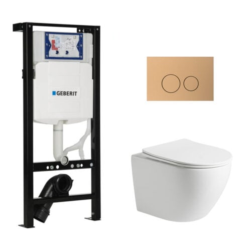 Toiletset Pietro tornado flush mat wit met bedieningspaneel Flat copper en Plieger Duofix WC-element (UP320)