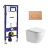 Toiletset Pietro tornado flush mat wit met bedieningspaneel Flat copper geborsteld RVS en Geberit Duofix WC-element (UP320)