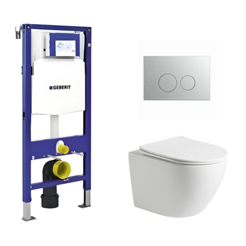 Dankzij de perfecte combinatie van hoogwaardig keramiek, RVS en betrouwbare Geberit techniek, kies je voor een set die stijl, hygiëne en kwaliteit moeiteloos samenbrengt.