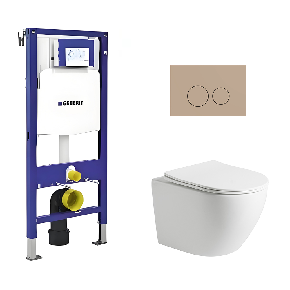Toiletset Pietro tornado flush mat wit met bedieningspaneel Flat mat beige en Geberit Duofix WC-element (UP320)
